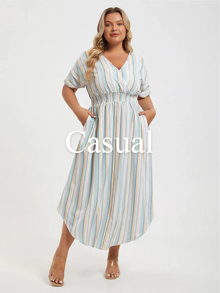 VIP Plus Elastic Waist Asymmetrical Hem Maxi Dress