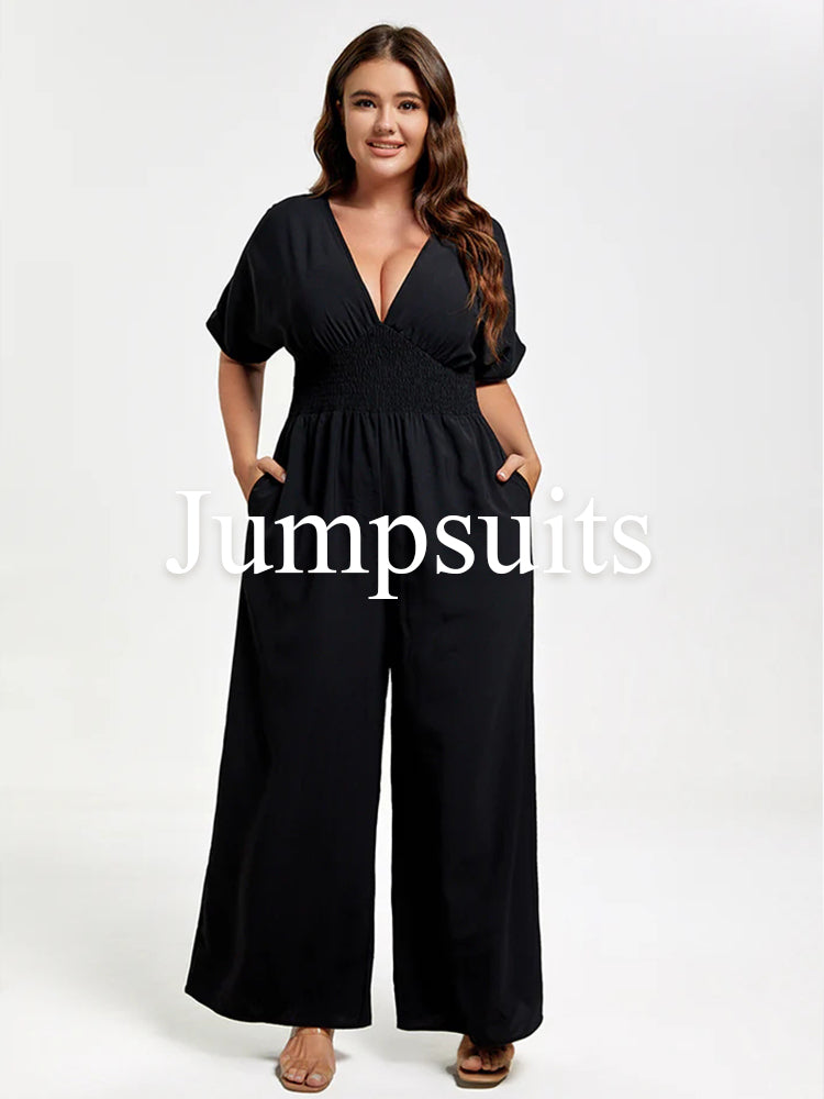 Plus Batwing Sleeve Tie Front Round Neck Jumpsuit