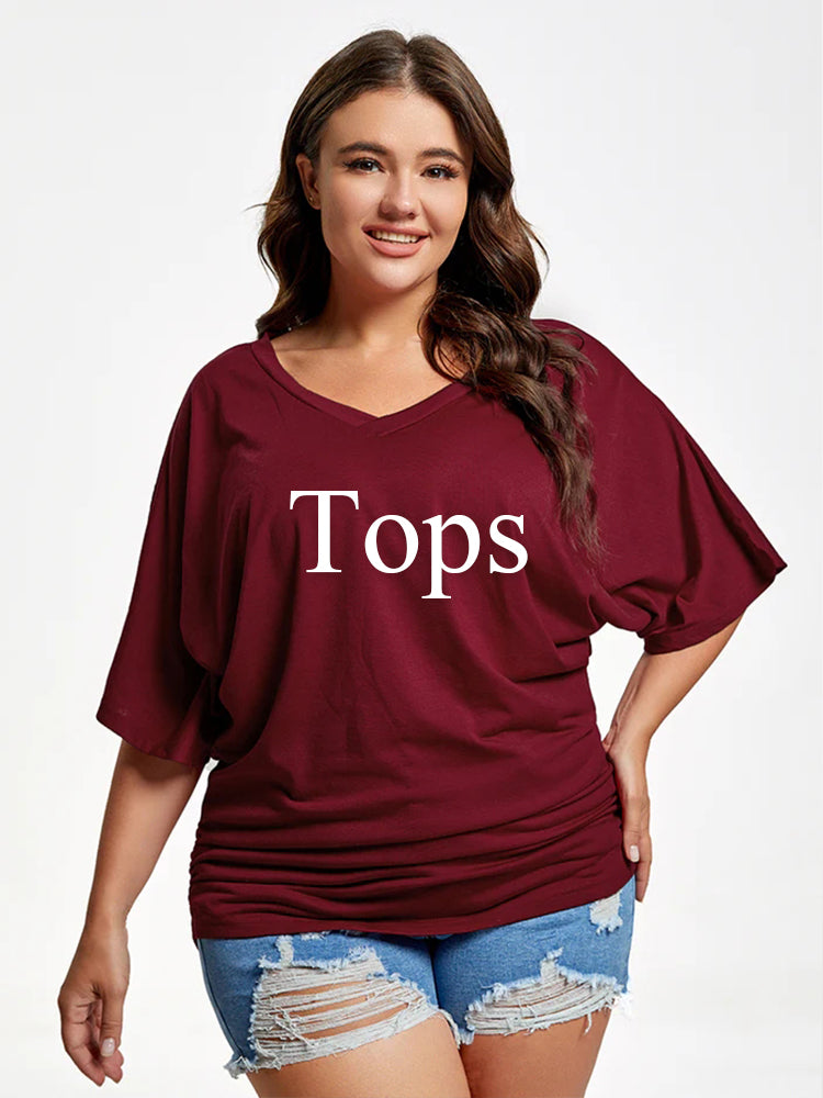 VIP Plus Plain Ruched Batwing Sleeve Tee