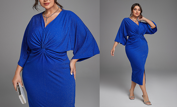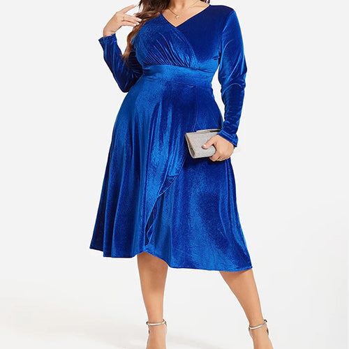 Plus Blue Crisscross Ruffle Wrap Maxi Dress