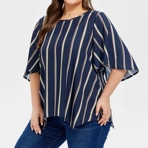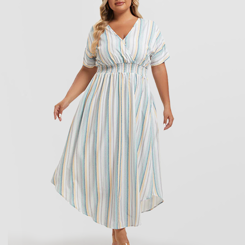 Plus Blue Striped Crisscross Wrap Midi Dress