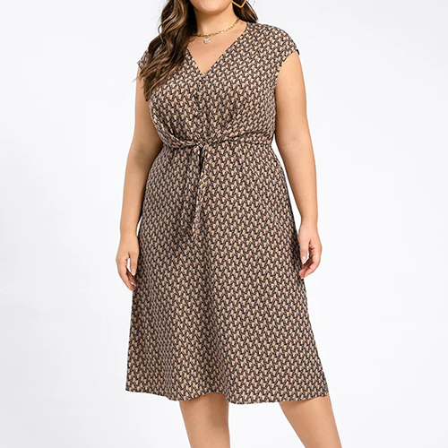 Plus Ruffle Sleeve Elastic Waist Knot Dress