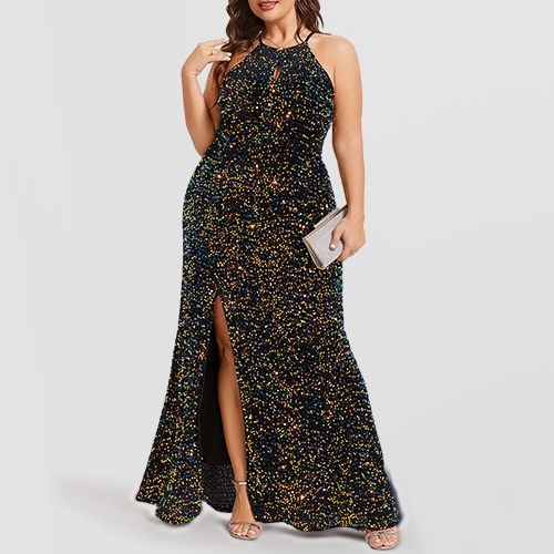 Plus Leopard Print Halter Elastic Waist Maxi Dress