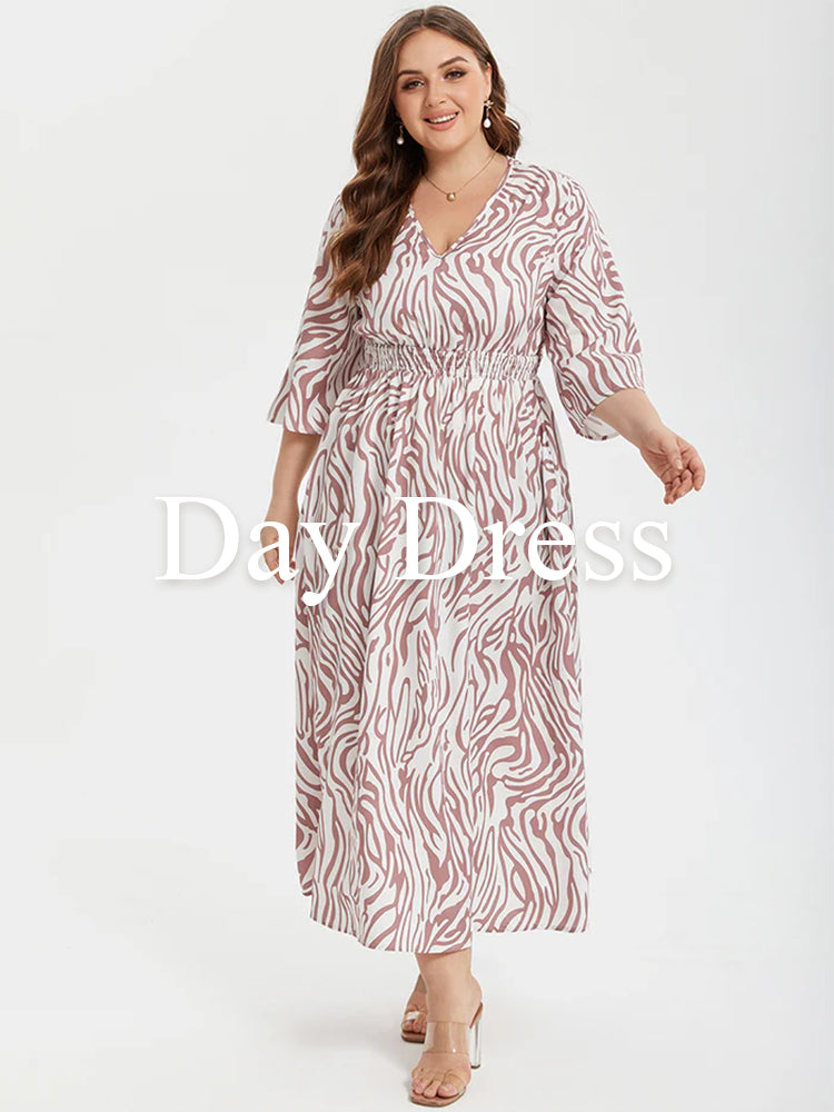 Plus Black Polka Dot V Neck Elastic Waist Dress