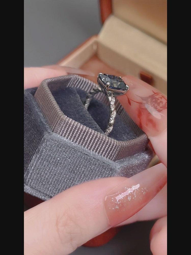3 Karat Dunkelblau Moissanite Verlobungsring Sterling Silber D Farbe VVS1